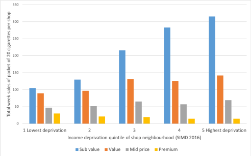 New research from the CRESH team using data from 124,566 shopping baskets purchased in convenience stores across Scotland has found that the purchase price of tobacco is lower in more disadvantaged neighbourhoods, largely because of the higher sales of the cheapest brands in these areas.